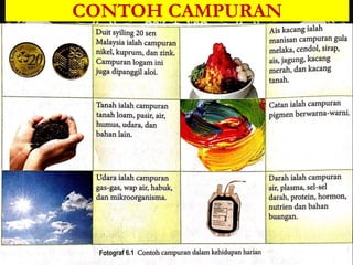 Sains Tingkatan 1 KSSM 2019. Terdiri daripada dua atau lebih unsur atau sebatian yang tidak. Boleh diasingkan kepada komponen-komponennya melalui.